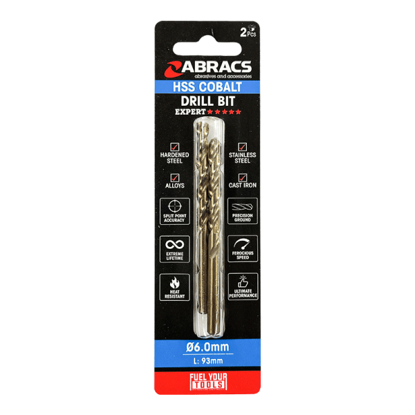 The ABRACS® 12.0mm Cobalt (M35) HSS Drill Bit includes features for high performance such as precision ground design and 5% Cobalt which offers extreme lifetime due to heat resistance. The split point cutting head enhances precision, accuracy, and drilling speed, making it ideal for challenging materials.
