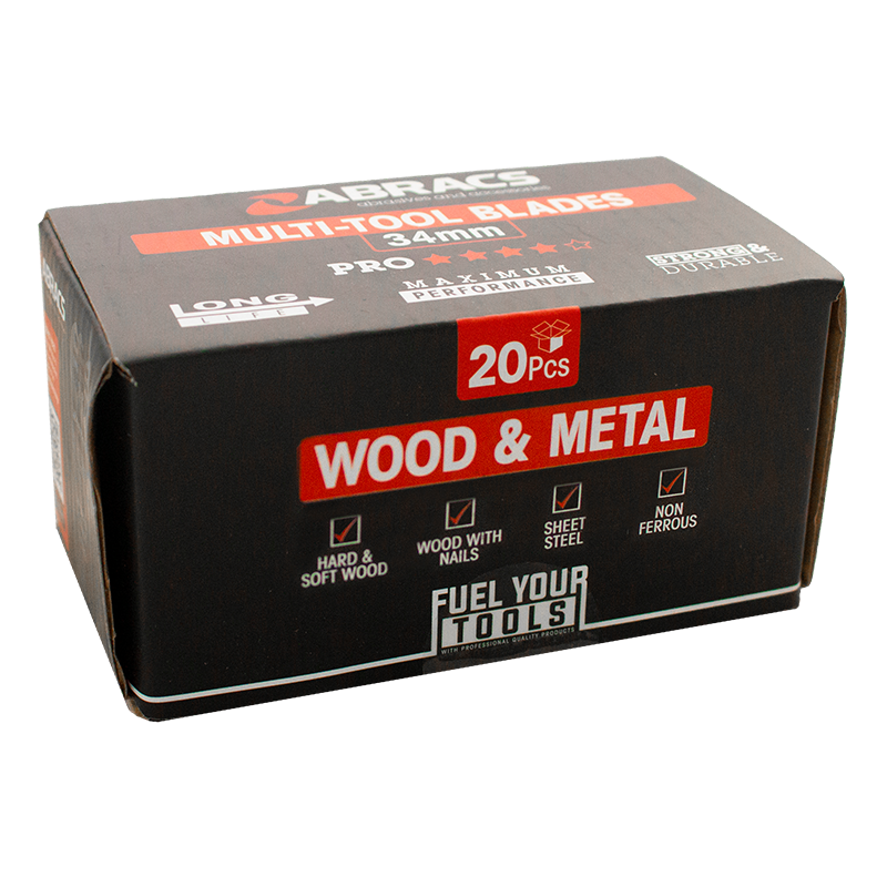 The ABRACS® 34mm Multi-Tool Blade includes 20 pieces designed for high performance and maximum versatility in professional use, covering materials such as wood and metal. These blades offer long life, multi-material capability, precision cutting, and maximum performance.