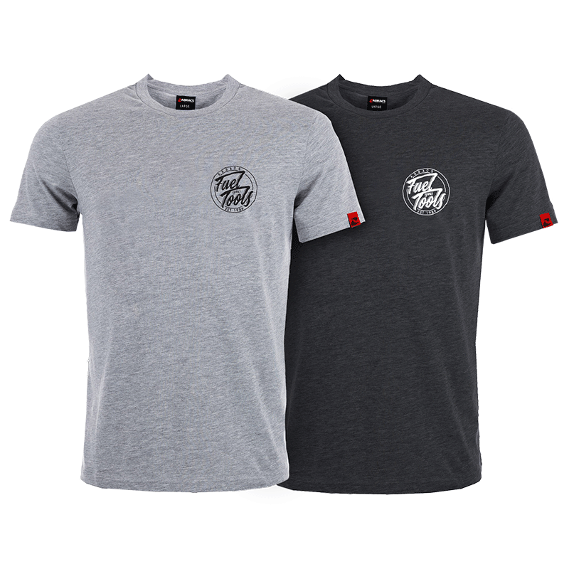 The Abracs FYT T-Shirt features a light grey color and is available in medium size. It is designed for workplace comfort and style under the ABRACS® brand.