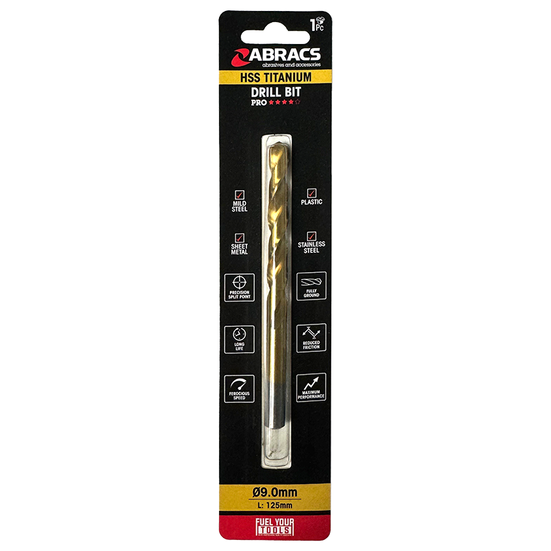 The ABRACS® HSS Titanium Drill Bit 1.0mm pack includes two precision ground drill bits designed for high performance. The titanium coating reduces friction and extends the lifespan by up to three times compared to standard HSS drill bits. They are suitable for drilling wood, metal, plastic, and other construction materials. A split point cutting head ensures precision, accuracy, and improved drilling speeds.