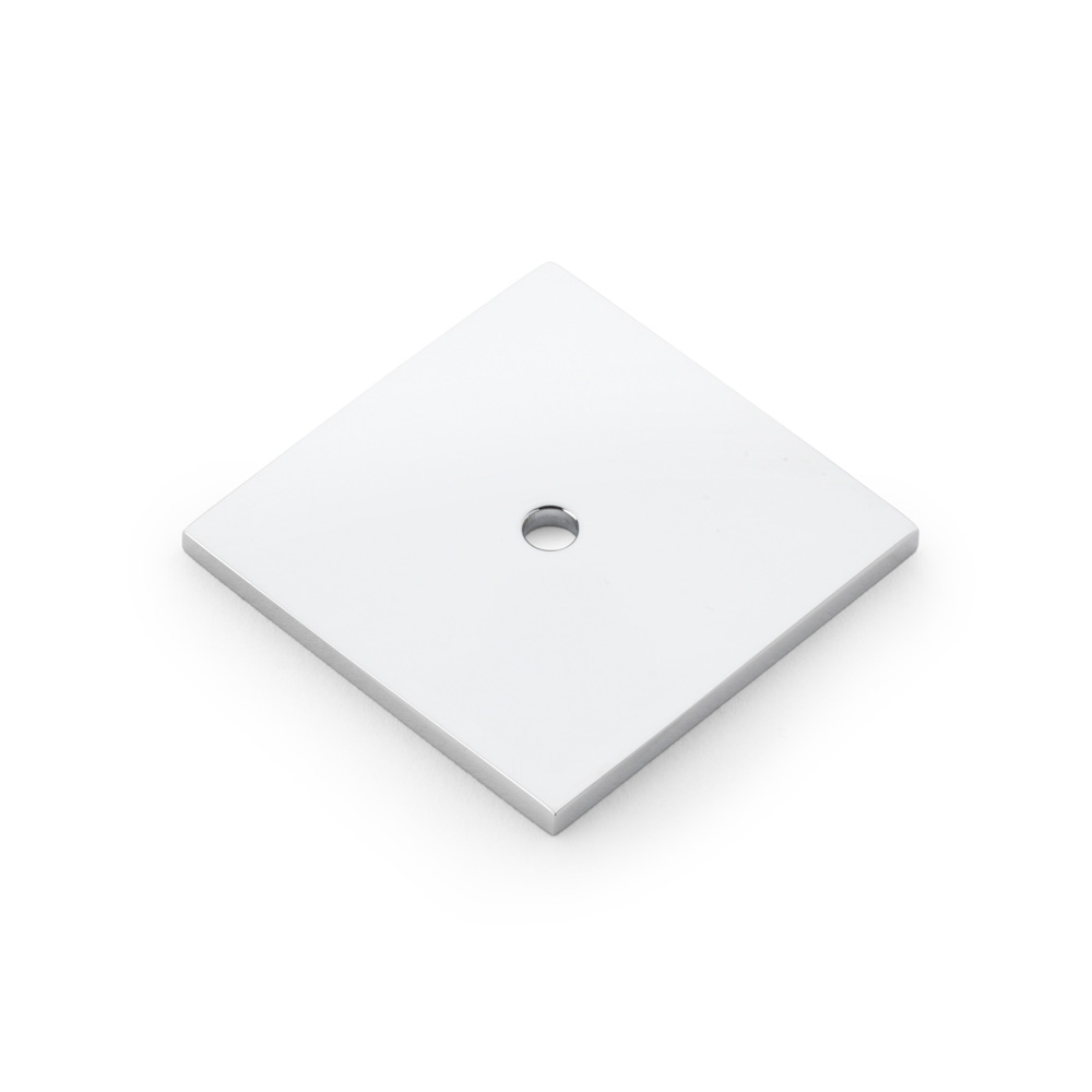 The Alexander & Wilks® bullion square backplate features a sleek polished chrome finish and is designed to complement cupboard knobs for a customized look. This versatile square backplate can be mixed and matched with various knob styles, offering flexibility in creating your desired cabinet hardware aesthetic. The modern, minimalist design includes pre-drilled mounting holes for easy installation.