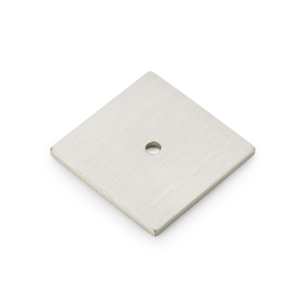 The Alexander & Wilks Bullion Square Backplate features a sleek satin nickel PVD finish and is designed to complement cabinet knobs for a customized look. This versatile square backplate offers a modern, minimalist design with a central mounting hole, making it perfect for mixing and matching with various cupboard knobs to create personalized cabinet hardware solutions.