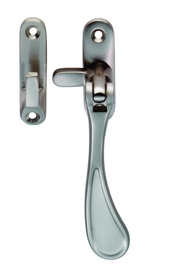 The CARLISLE BRASS® Victorian reversible casement fastener is a plain spoon-ended pivot-reversing non-locking fastener, one of the most commonly used fasteners for traditional timber windows. It operates with either a mortice or hook plate and is reversible. This component is not suitable for use on weather-stripped windows. The set comes in a satin nickel finish and includes a mortice plate and a hook plate. Comes with a 10-year mechanical guarantee.