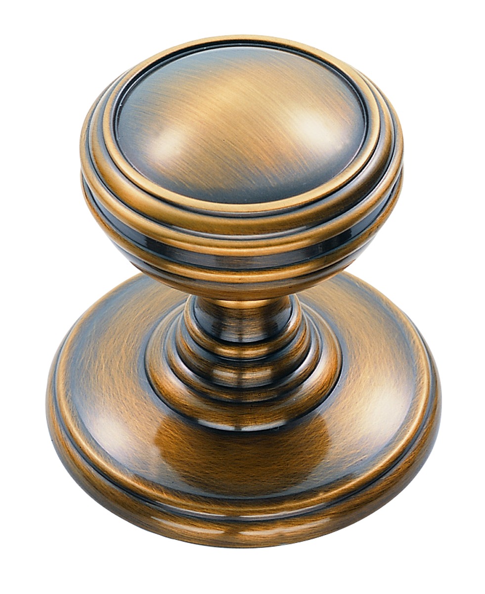 The CARLISLE BRASS® ftd delamain plain knob is a plain topped knob with sweeping lines around the outer edge on a ringed tiered stem and rose. Designed to complement the mortice knobs in the Delamain range, this knob is suitable for cupboards and cabinets. It is available in different finishes and sizes, providing versatility for various design preferences.
