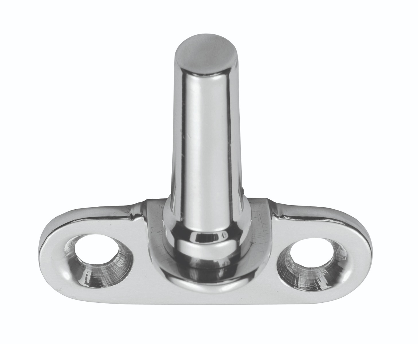 The CARLISLE BRASS® Pin for Flush Fitting Sash is a cranked casement stay pin designed for use with a casement stay when the window sash finishes flush with the frame and there is nowhere to fit the standard stay pin. It comes in a polished chrome finish and is suitable for various window fittings projects where a flush appearance is required.
