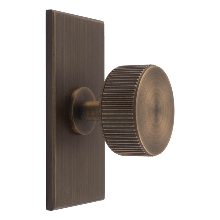 The CARLISLE BRASS® Lines Radio Knob on Rectangular Backplate is a sophisticated and stylish piece of cabinet hardware designed to enhance various interior design styles including industrial, modern, transitional, and contemporary. Made from solid brass and finished in antique brass, this precision-engineered knob adds texture and an iconic industrial design element to any space. Available backplate dimensions include 40mm x 40mm or 76mm x 40mm, making it versatile for different applications. Matching cupboard pull handle and knobs are available to create a cohesive look.