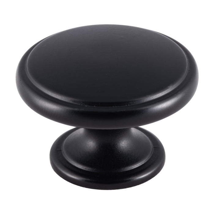 The CARLISLE BRASS® ftd oxford knob is a sophisticated and elegantly crafted cabinet hardware piece. It features subtle ringed detailing on the smooth domed knob, which is echoed on the rose, adding a touch of elegance and refinement to any environment. This luxurious knob, with its matte black finish, is designed to complement contemporary cupboard or cabinet designs.