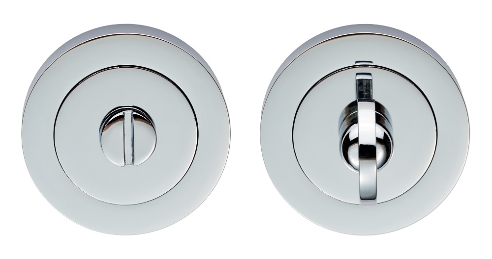 The CARLISLE BRASS® turn & release is a thumb turn and release mechanism featuring a concealed fix screw on rose. Designed for privacy, this thumb turn and release is ideally suited for doors requiring a locking feature. The polished chrome finish gives it a sleek, modern appearance, making it both functional and aesthetically pleasing. The turn and release are on a round rose, providing a streamlined look suitable for contemporary interiors. The 5mm spindle adds durability and ensures smooth operation, while the 52 mm size fits standard door preps.
