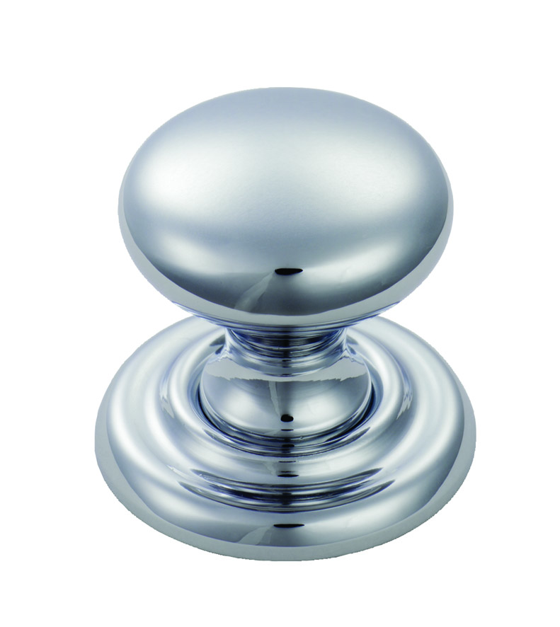 The CARLISLE BRASS® ftd victorian knob 38mm is a popular smooth-styled mushroom knob that sits on an elegant tiered rose for texture and eye-catching appeal. It is comfortable to grip and easy to maintain. Designed to compliment the mortice knobs in the Victorian range, this knob is available in different finishes and sizes. This particular knob is finished in polished chrome, offering a sleek and modern look suitable for contemporary cabinetry.