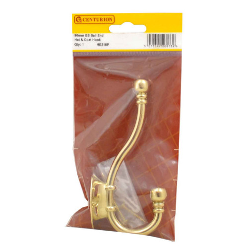 The Centurion 130mm Premium Ball End Hat & Coat Hook is an elegant decorative hook perfect for hanging coats, hats and other clothing in any room. This brass-finished hook features a distinctive ball end design, offering both style and functionality. Easy to install and ideal for internal use, this premium hook combines practical storage with decorative appeal.