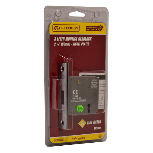 The Centurion 63mm 3 Lever Mortice Deadlock is a high-quality security solution designed for timber doors. This versatile lock includes two keys and can be installed on both left and right-handed doors. The nickel-plated finish offers excellent durability and aesthetic appeal. Being FD30/60 fire-rated and CERTIFIRE approved, this lock is ideal for fire door applications. The 3-lever security mechanism provides reliable protection for residential and light commercial use.