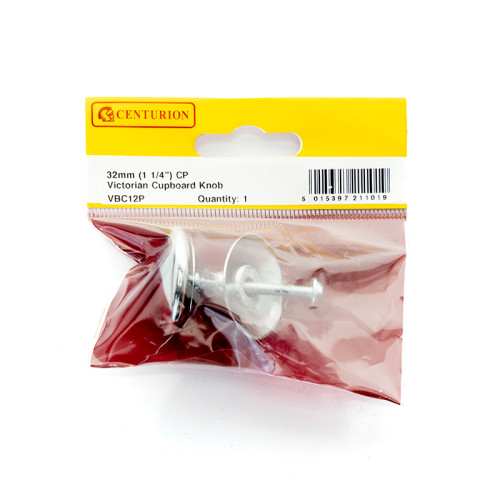 The Centurion 32mm Victorian Cupboard Knob includes a traditional Victorian-style knob with a chrome plated finish and bolt-through fixing. Perfect for adding a classic touch to kitchen cabinets, wardrobes, bathroom vanities and drawers, this elegant knob features a timeless design that combines both style and functionality. The knob comes complete with a threaded bolt that screws in from the rear for secure installation.