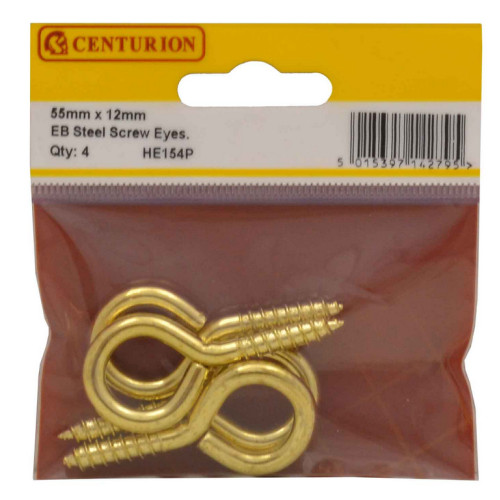 The Centurion Steel Screw Eyes are versatile fasteners ideal for garden applications and picture hanging. These 55mm x 12mm brass-plated screw eyes are perfect for creating plant support systems with steel wire and can be easily screwed into timber and similar materials. Each pack contains 4 screw eyes, making them practical for attaching wires, cables, and twine in both outdoor and indoor applications.