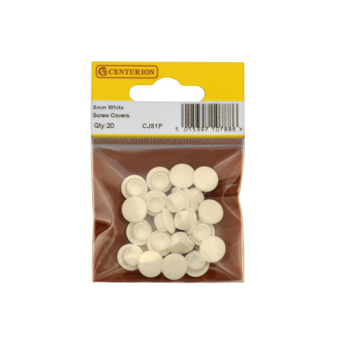 The CENTURION Beige Screw Cover Caps provide a decorative finishing touch by concealing unsightly screw heads. These plastic caps are designed to fit screw gauges 6 and 8, offering a clean and professional appearance to your installations. The beige color helps them blend seamlessly with light-colored surfaces for a polished look.