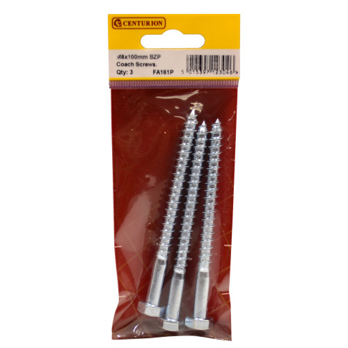The CENTURION M8 x 100mm Zinc Plated Coach Screws are heavy-duty fixings designed specifically for timber applications in fencing and joinery. These professional-grade screws feature a hexagon head for superior torque capability and efficient installation using socket drivers. The zinc plated finish provides enhanced corrosion resistance, making them suitable for both indoor and outdoor use. Ideal for heavy timber installations and securing timber to masonry.
