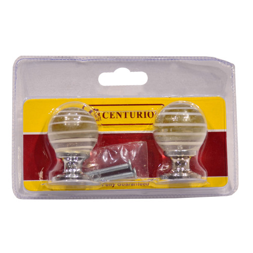 The Centurion 30mm Clear Glass Swirl Knobs feature an elegant period-style design with a beautiful swirled pattern within clear glass. Each knob comes complete with chrome plated rear bolt fixings, making them perfect for enhancing wardrobes, kitchen cabinets and bathroom furniture with a classic, decorative touch.