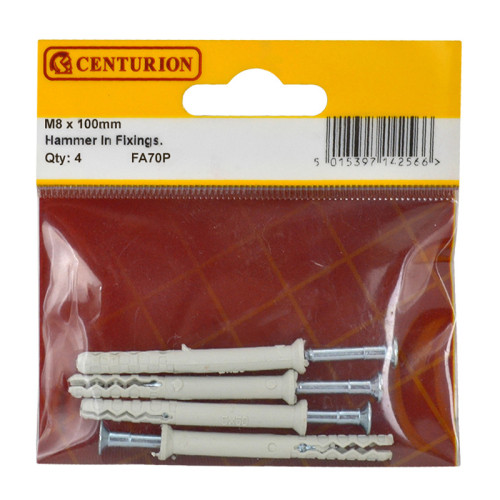 The CENTURION M8 x 100mm Hammer In Frame Fixings are heavy-duty fasteners designed for securing UPVC, wood and metal frames to masonry or wooden substrates. These robust fixings feature a Pozidrive compatible head for easy removal if needed and provide strong grip in solid substrates like concrete and brickwork. Quick and easy to install with just a hammer, these versatile fixings are ideal for window frames, door frames and batten installations.