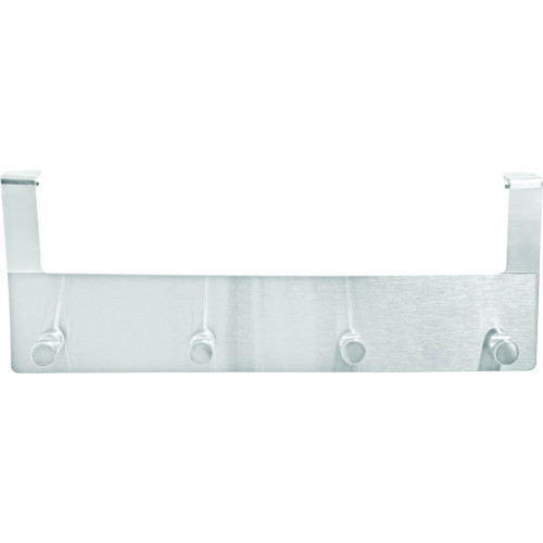 The Centurion over-door hanger features 4 grooved peg hooks mounted on a sleek brushed metal backing plate. Designed for easy installation with no screws or drilling required, this practical storage solution fits most standard doors. Perfect for hanging coats, hats, towels and other items to help keep your home organized and clutter-free.