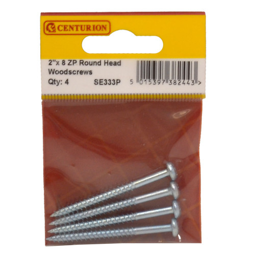 The CENTURION 2 inch x 8 Round Head Woodscrews are versatile twin thread fasteners designed for engineering trades and sheet material applications. These zinc plated screws feature a flat under-head surface that prevents material deformation, making them ideal for DIY, ironmongery, electrical, and plumbing installations. The twin thread design ensures faster and easier insertion, while the zinc plating provides excellent corrosion resistance.
