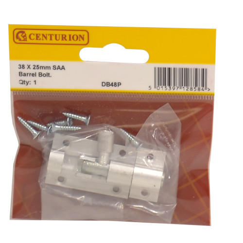 The Centurion 38mm x 25mm SAA Straight Barrel Bolt is a versatile and durable security solution ideal for both indoor and outdoor applications. This corrosion-resistant barrel bolt is perfect for lightweight doors, chests, and cabinets, offering a simple yet effective locking mechanism. Its flexible design allows for vertical, horizontal, left, or right-hand installation, making it highly adaptable for various security needs.