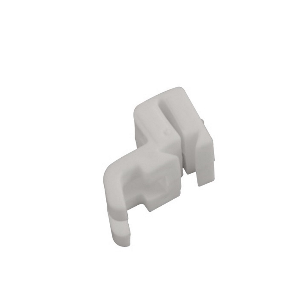 This end stop is designed for use with Swish Sologlide systems. Its function is to cap or limit the travel of gliders on a track, providing a stop point for curtain carriers. The piece showcases a clean white finish that can effortlessly blend with any decor style.