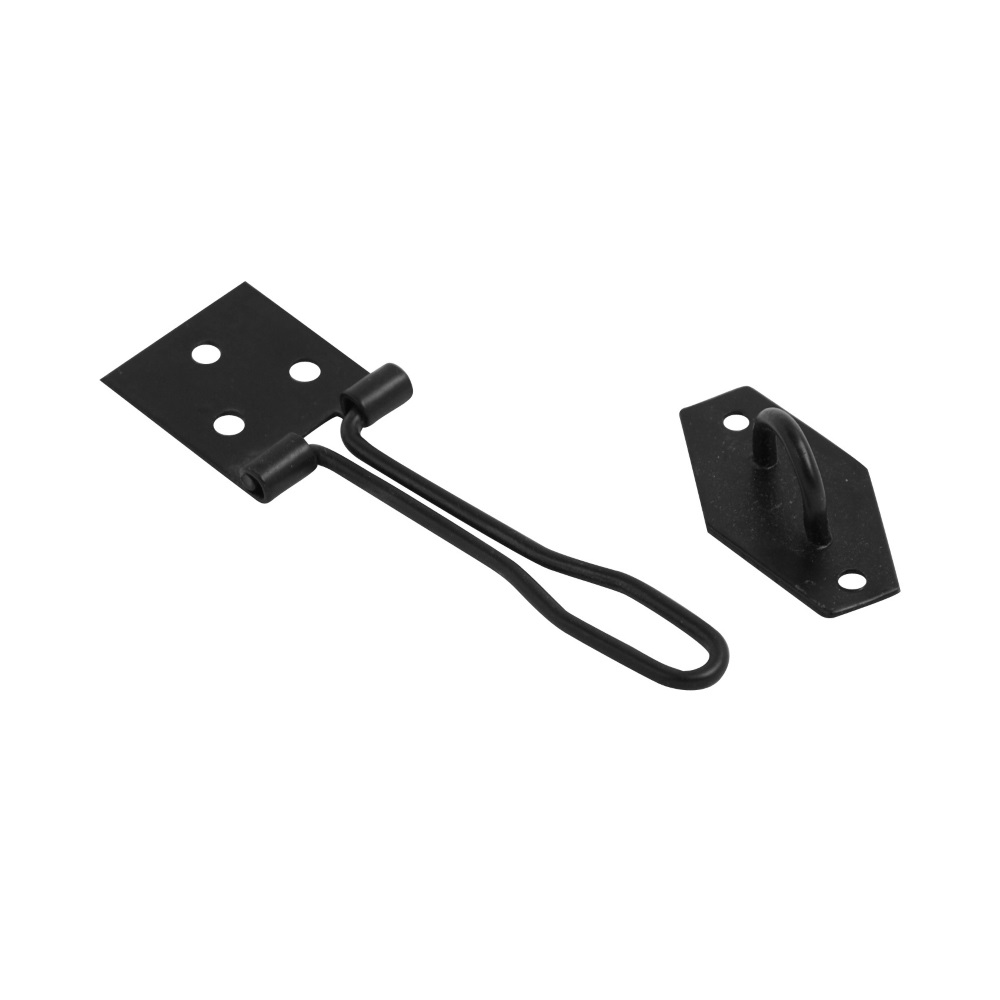 The CORE-BULK Hasp & Staple Wire Black features a traditional style hasp and staple security device, suited for securing doors, gates, or cabinets. The wire design of the hasp adds flexibility while maintaining strength, and the staple part is designed to accommodate a padlock. The entire unit is finished in black, which provides corrosion resistance and a discreet appearance on most backgrounds. This particular model measures 100 millimeters, offering a compact security solution for a variety of applications.