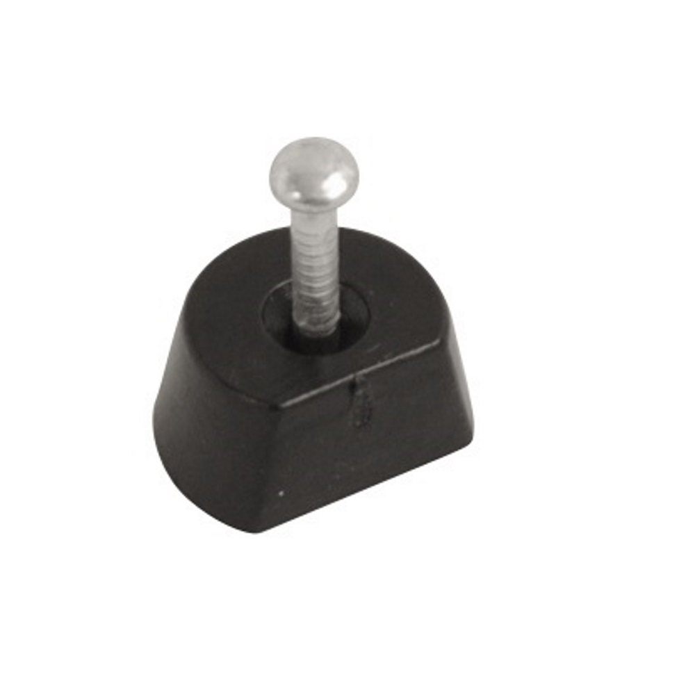 The CORE-BULK Nail in Shelf Support Black is designed to securely hold shelving units in place. This support features a nail-in design for easy installation, with a sturdy pin embedded in a black, triangular base that provides stability and support for shelf boards.
