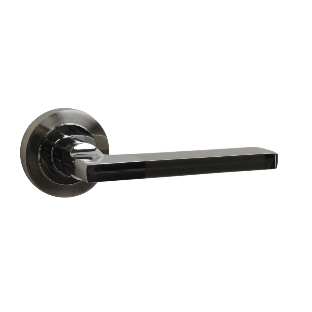 The CORE-BULK Naxos Lever on Rose is a contemporary door handle with a chrome/satin chrome plated finish, designed for internal doors. This stylish dual finish lever exudes modern aesthetic appeal, making it an excellent choice for both homes and offices. Its most highlighted feature is the double spring mechanism that ensures the lever springs back to its original position, enhancing its functionality and longevity. Additionally, the design cleverly conceals all fixings, offering a seamless and elegant appearance. The chrome and satin chrome plating not only contributes to its durability but also provides an upscale look to the hardware. The product comes with all necessary fixings for easy installation.