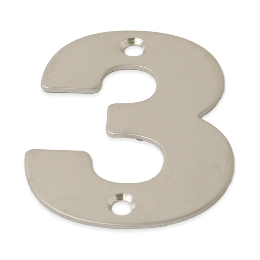 The CORE-BULK Numeral 150mm ‘3’ is a sleek door number designed for easy visibility and a modern aesthetic. It features a satin stainless steel finish, offering a subtle matte look that complements various door styles. Its size and the reflective surface enhance readability from a distance. With pre-drilled holes, installation is straightforward, making it a practical choice for residential and commercial properties looking to clearly display the number 3.