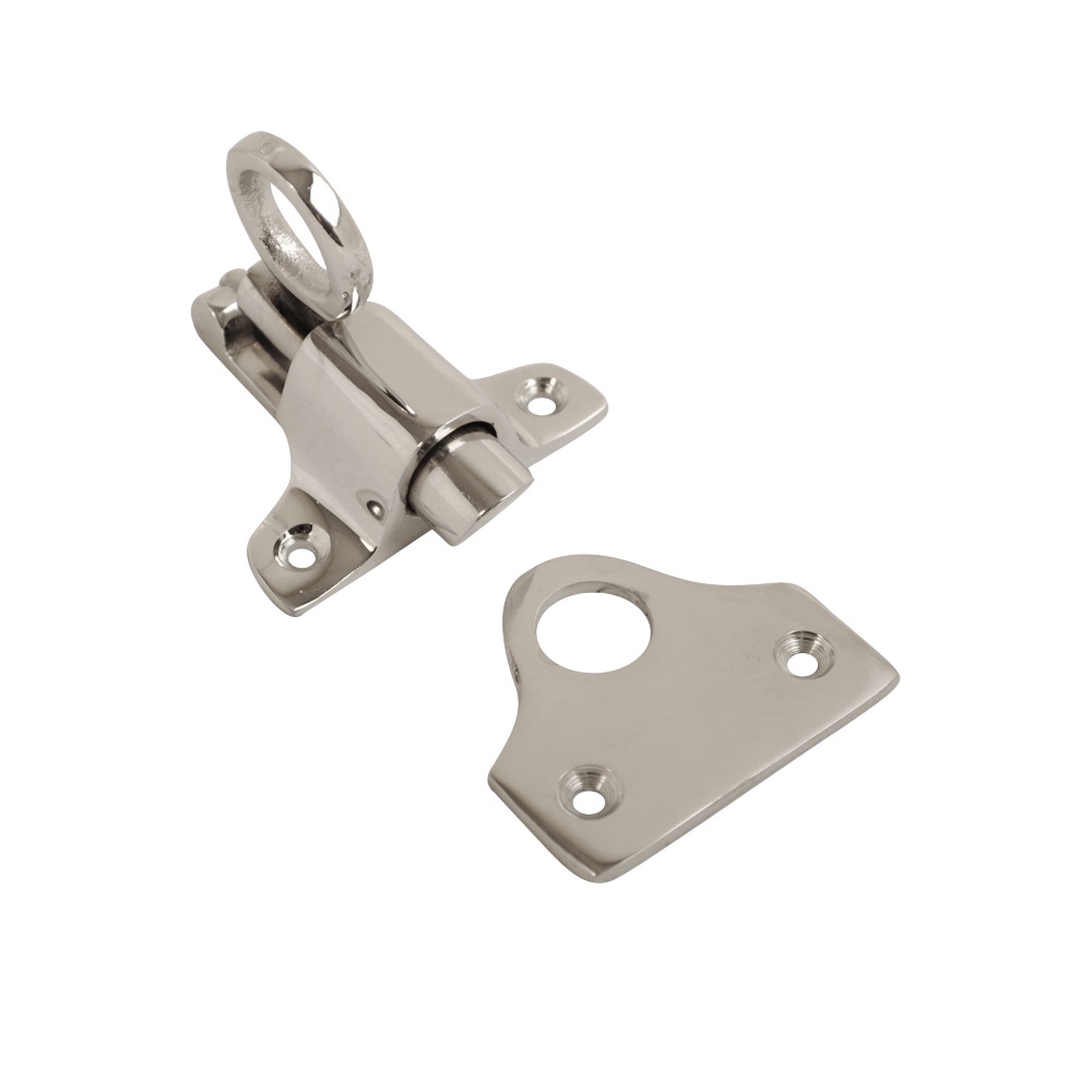 The CORE-BULK CP Ring Fanlight Catch is a hardware component designed for securing and operating fanlight windows, often found above doors in traditional and period properties. This catch features a ring mechanism that allows for easy opening and closing of the window. It comes with a matching keeper plate to ensure a secure closure. The polished chrome plated finish gives it a sleek and modern appearance, making it a suitable choice for interior designs that require a touch of elegance.