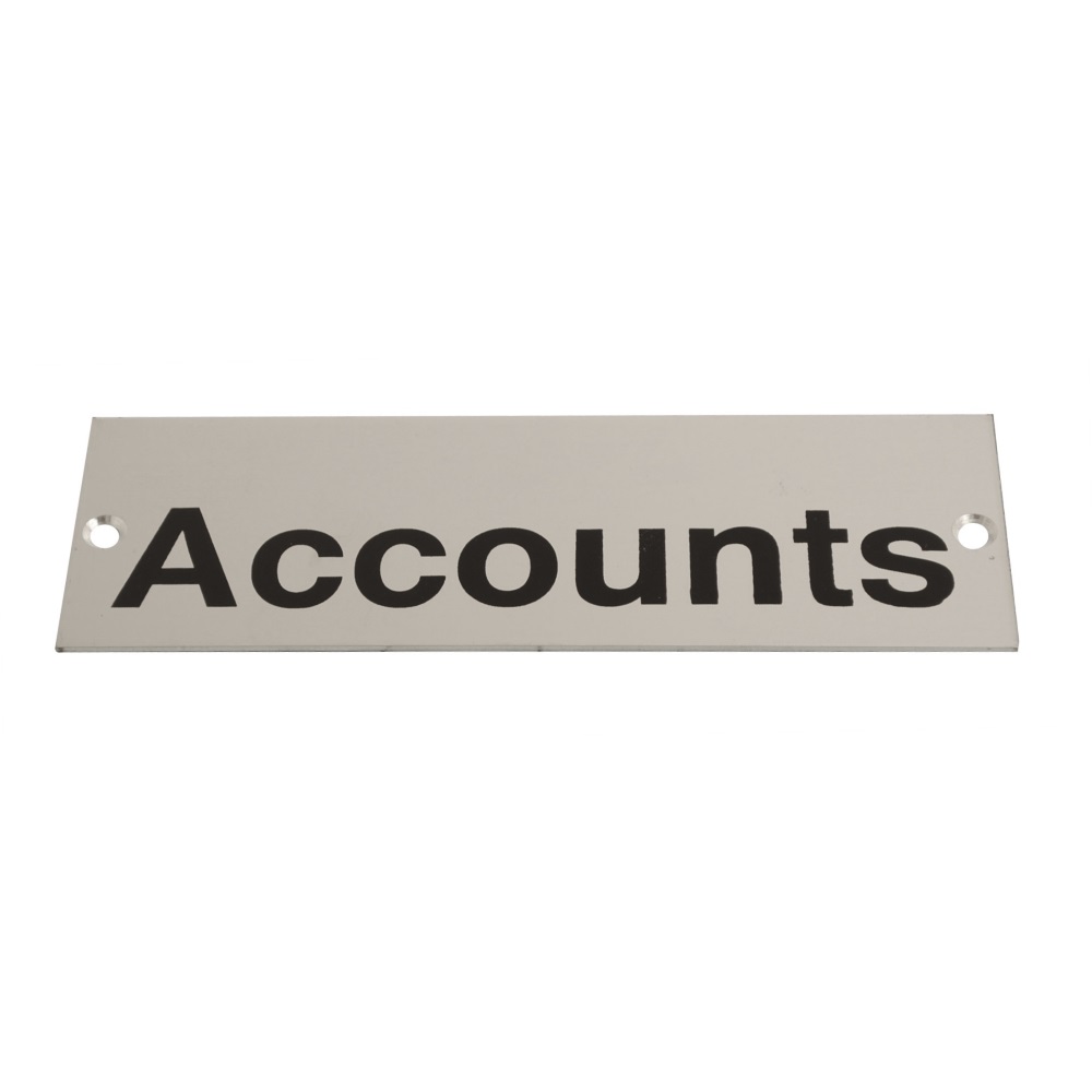 The CORE-BULK Sign Screen Printed Accounts SAA is a professional office sign made from high-quality aluminum with a screen-printed “Accounts” label, designed to denote the accounts section or personnel within a commercial establishment.