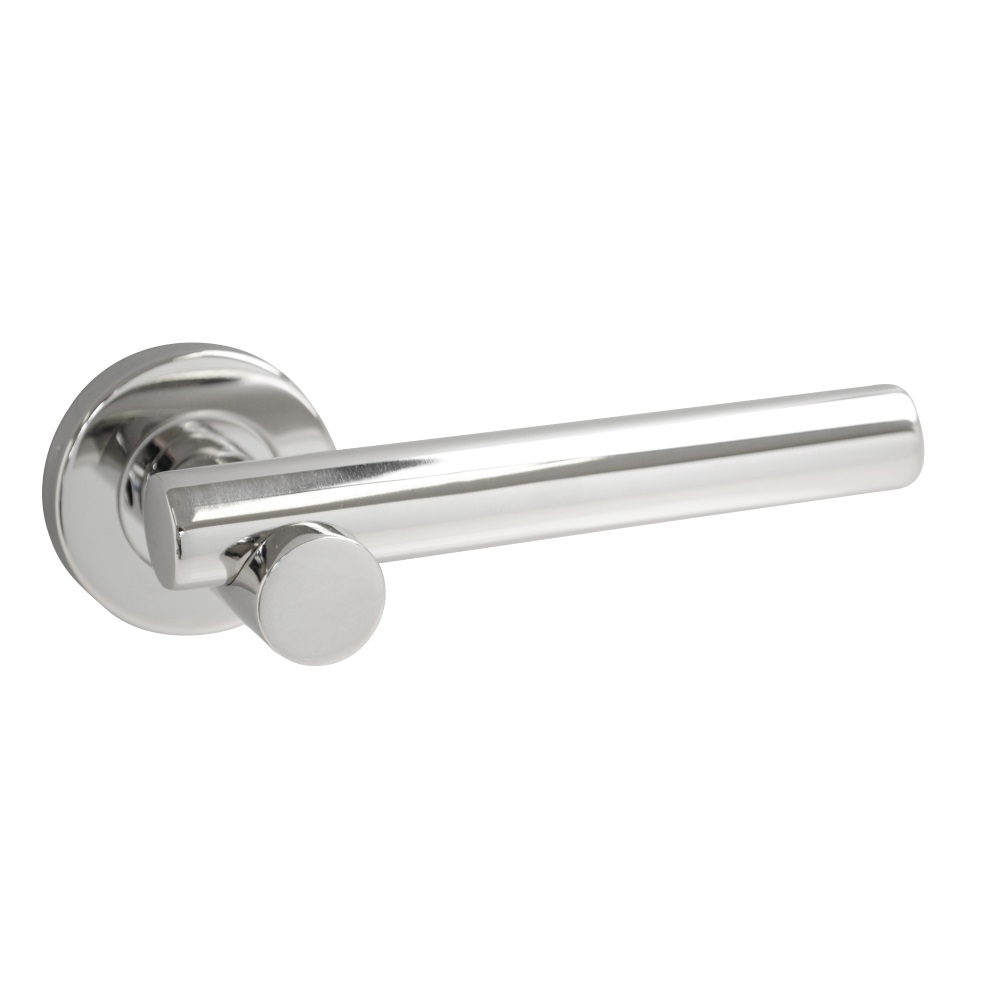The CORE-BULK Teckna polished stainless steel lever on rose is an elegant door handle designed for internal doors. It features an automatic spring mechanism that ensures the handle returns to its original position after use, providing both convenience and a sophisticated appearance. The concealed rose cover efficiently hides all fixings, resulting in a clean and seamless installation, ideal for enhancing the aesthetic of any home or office environment.