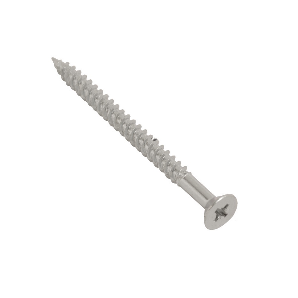 This CORE-BULK brand screw features a twin-thread design with a countersunk pozi drive head, ideal for woodworking projects where a flush surface is required. The bright zinc-plated (BZP) finish provides a degree of corrosion resistance, making it suitable for various indoor applications.