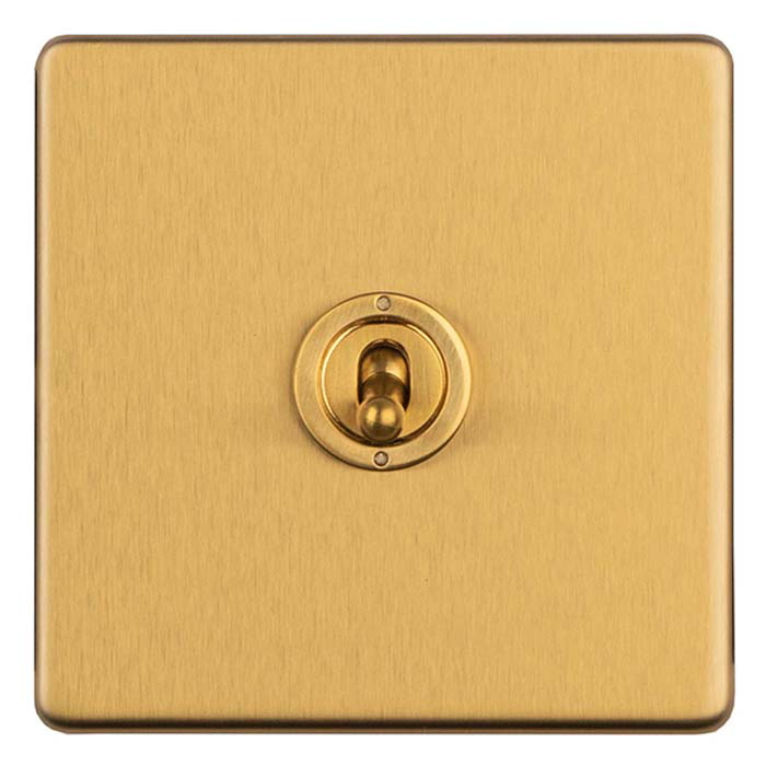 The EUROLITE® Concealed toggle switch features an elegant satin brass finish with a black trim, offering both style and functionality. This 10 Amp rated, 2-way toggle switch is mounted on a sleek 3mm concealed faceplate, providing a sophisticated switching solution for modern interiors. The combination of brushed brass finish and black trim creates a premium aesthetic suitable for both contemporary and traditional decor schemes.