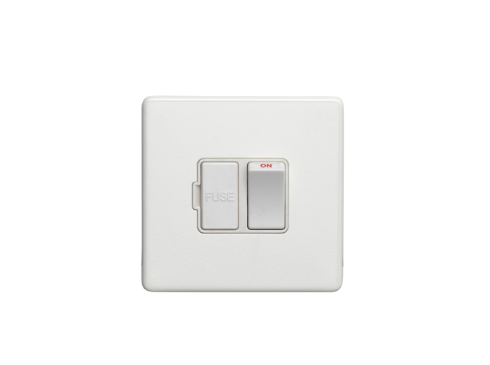 The EUROLITE® Concealed 3mm Switched Fuse Spur features a sleek matt white finish with matching white trim and rocker switch. This 13 amp fused spur unit offers a modern, minimalist design with a concealed flat plate installation, making it an elegant choice for contemporary interiors. The unit includes a clear ON indicator and accessible fuse compartment for easy maintenance.