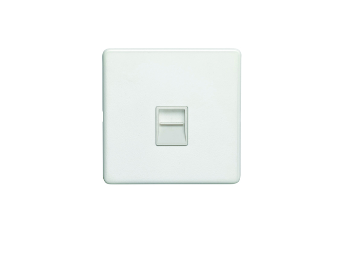 The EUROLITE® Concealed Telephone Master Socket features a sleek, modern design with a premium matt white finish and matching white trim. This single gang socket provides a clean, minimalist appearance with its concealed 3mm flat plate design, making it an ideal choice for contemporary interiors. The socket offers reliable telephone connectivity while maintaining a sophisticated aesthetic that seamlessly integrates with any room décor.