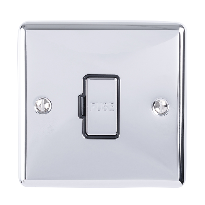The EUROLITE® Enhance Decorative Unswitched Fuse Spur combines functionality with elegant design, featuring a luxurious polished chrome finish with contrasting black trim. This 13 amp fuse spur provides a safe and stylish solution for fixed appliance connections. The decorative chrome finish plate with its sleek black insert adds a premium touch to any interior, making it ideal for both modern and traditional settings.