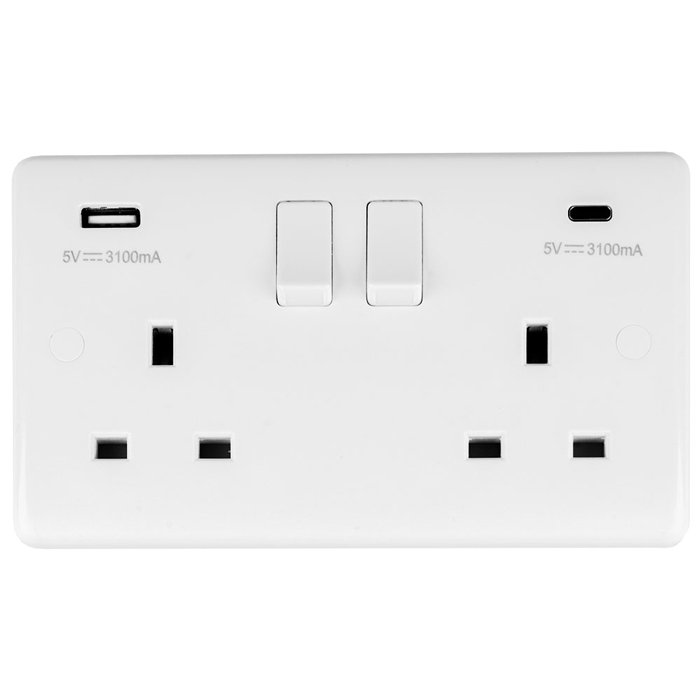 The EUROLITE® Enhance White Plastic double socket features two 13A switched power outlets and two integrated USB charging ports (1x Type A and 1x Type C) delivering a powerful 3.1Amp charging capability. The modern white finish and clean design make it an attractive and practical addition to any room, while providing convenient power and charging solutions for multiple devices. The dual USB ports eliminate the need for separate charging adapters, helping to keep spaces tidy and organized.