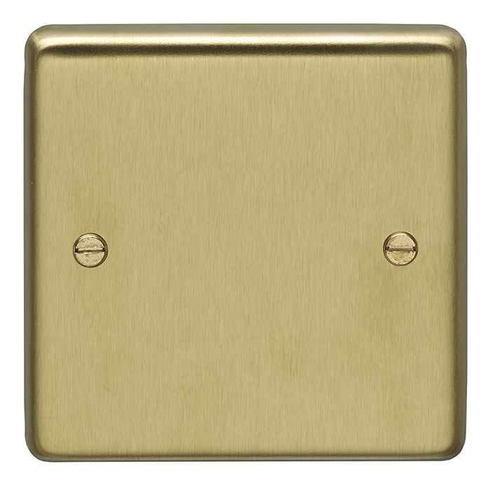 The EUROLITE® Single Blank Plate features a sophisticated satin brass finish with a contrasting black trim, offering an elegant solution for covering unused electrical boxes. The round-edged design and brushed metal surface provides a premium look while maintaining functionality. Made from durable stainless steel, this blank plate offers both style and practicality for interior wall finishing.