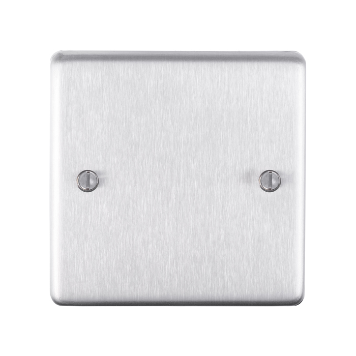 The EUROLITE® Single Blank Plate features a sleek satin stainless steel finish with black trim, offering a contemporary and professional appearance. This round-edged plate is designed to cover unused electrical box openings, providing a clean and finished look to your wall installations. The durable stainless steel construction ensures longevity while the brushed satin finish helps conceal fingerprints and minor scratches.