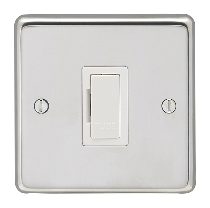 The EUROLITE® Unswitched Fuse Spur features a sleek polished stainless steel faceplate with an elegant white interior trim. This 13 amp fuse spur offers a sophisticated round-edged design that combines functionality with modern aesthetics. Perfect for both residential and commercial installations where a premium finish is desired, this unswitched fuse spur provides a reliable power connection point with a professional appearance.