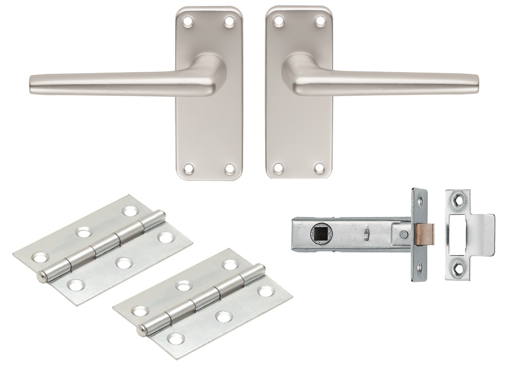 The EUROSPEC® aluminium lever latch internal pack includes satin anodised aluminium SAA22 handles, a 2.5-inch tubular latch, and a pair of hinges. This comprehensive door pack is constructed to suit internal doors and is designed to provide a seamless, modern appearance with its satin anodised aluminium finish. Ideal for residential or commercial use, the components are durable and designed to ensure smooth and reliable operation.