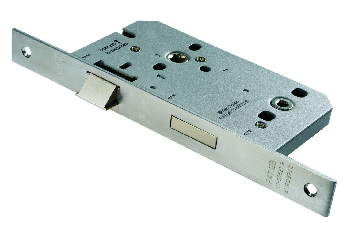 The EUROSPEC® din bathroom lock 55mm – contract – satin stainless steel features a contract DIN bathroom lock with a square forend. The lock includes a latch bolt with the Easi-T reverse function for easy reversal without undoing the case, allowing for quick adjustments. Certified to BS EN 12209, this lock is frequently used by national house builders. It is suitable for use in all domestic, industrial, and commercial environments. It comes with a 5-year mechanical guarantee and has been CE and Certifire tested. The satin stainless steel finish gives it a sleek and modern appearance.