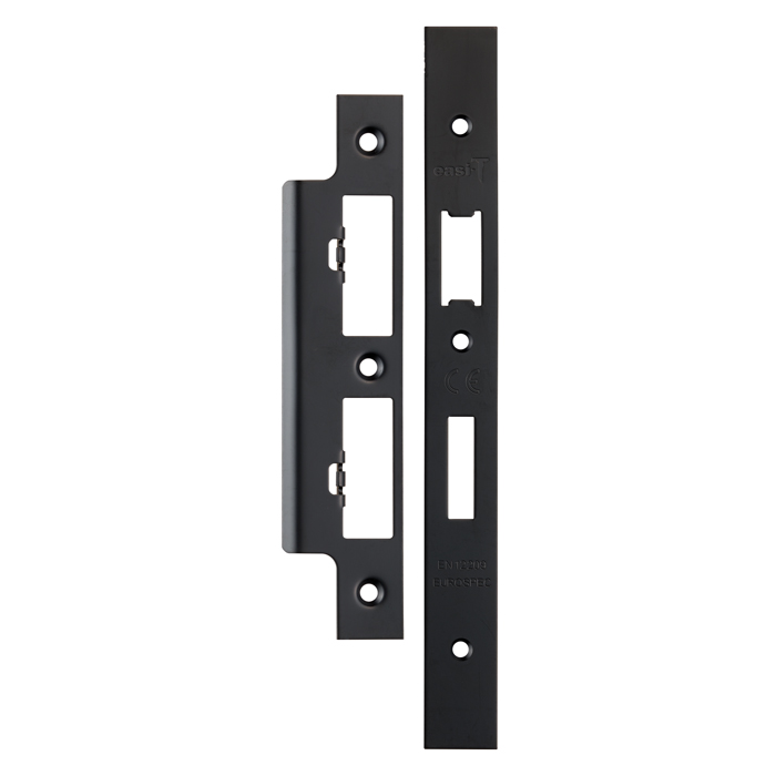 The EUROSPEC® forend strike & fixings are designed for use in sash and bathroom locks. This stylish and functional part comes in a square shape with a clean matt black finish, adding a modern touch to your door fittings. Suitable for the DLS7260EP and DLS7860WC models, these components ensure secure operation and alignment of the door latch within the door frame.
