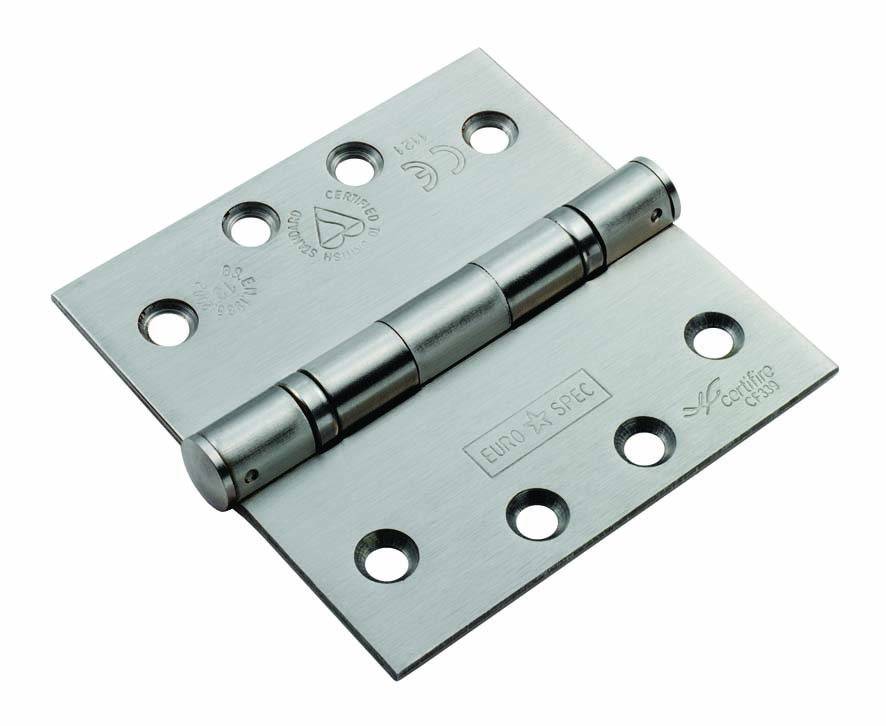 The EUROSPEC® 102 x 102 x 3mm Ball Bearing Hinge Grade 13 – 316 is a high-quality component known for its smooth operation, durability, and long-lasting design. This ball bearing hinge can handle a maximum load of 120kg and is praised for its ability to carry heavier loads compared to washered hinges. It has a satin stainless steel finish and is suitable for all domestic, commercial, and industrial use. The hinge is ideal for standard internal residential doors; while a pair of hinges is adequate, fitting three hinges per door can help spread the load evenly and prevent twisting or warping due to heat and moisture. This hinge carries a CE mark, is Certifire tested, and has a BS EN 1935 rating. It also features a 25-year mechanical guarantee.