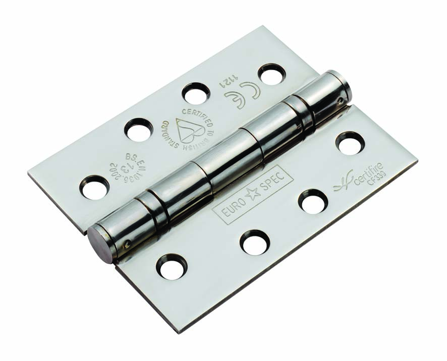 The EUROSPEC® 102 x 76 x 2.5mm Ball Bearing Hinge Grade 13 c/w Screws (3 pack) is a high-quality hinge suitable for industrial, commercial, and domestic use. It is the most popular type of door hinge on the market due to its smooth operation, durability, and long-lasting design. These hinges are particularly effective for 40mm or 44mm firecheck doors, both internal and external. Featuring a CE mark and Certifire certification, they are fire door rated. The ball bearing mechanism can support a maximum load of 120kg and is beneficial for doors that may be exposed to heat and moisture over time. This hinge model is designed to ensure even load distribution across three hinges per door to prevent twisting or warping. Comes with a 25-year mechanical guarantee.