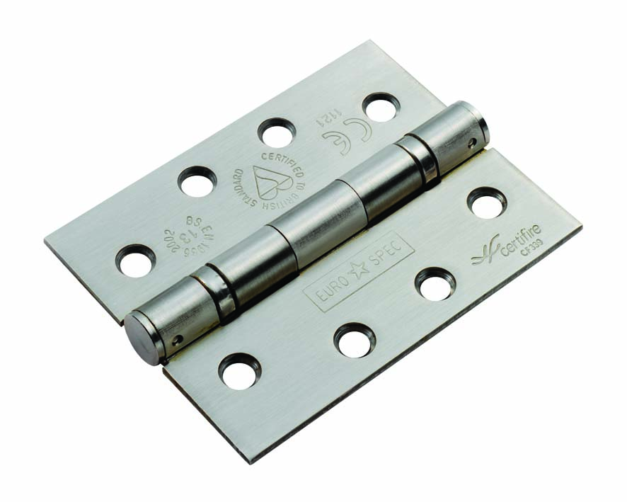 The EUROSPEC® 102 x 76 x 2.5mm ball bearing hinge grade 13 is a highly durable and smooth-operating hinge, perfect for doors weighing up to 120kg. Suitable for 40mm or 44mm firecheck doors, both internal and external, it is marked with CE and has undergone Certifire testing. Popular in industrial, commercial, and domestic settings, this hinge is known for its ability to carry heavier loads than washered hinges, its long-lasting design, and its capacity to reduce door warping by spreading the load evenly when three hinges are used per door. Comes with a 25-year mechanical guarantee and is fire door rated. The pack includes three hinges and matching screws.
