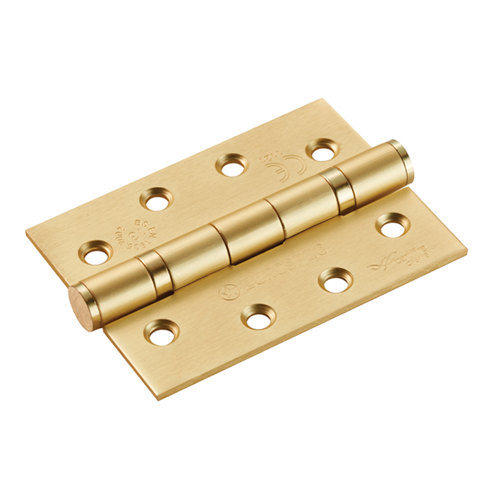 The EUROSPEC® 102 x 76 x 3mm Ball Bearing Hinge is a Grade 13 hinge designed for both commercial and domestic use. It includes two hinges along with accompanying screws in a satin brass finish. The hinge boasts smooth operation, durability, and a long-lasting design, making it capable of carrying heavier loads (up to 120kg) compared to washered hinges. It’s suitable for standard internal residential doors, with the recommendation of fitting three hinges per door to spread the load evenly and prevent twisting or warping over time due to heat and moisture exposure. The hinges are CE marked, Certifire tested, and come with a 10-year mechanical guarantee. These hinges are also fire door rated.