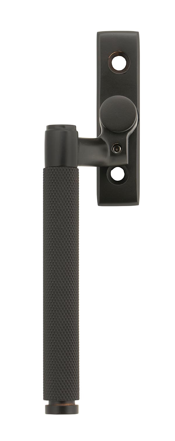 The FROM THE ANVIL® Aged Bronze Brompton Espag is a contemporary left-handed window handle featuring an elegant industrial design with a distinctive textured, knurled grip surface. Hand forged from solid bronze with a minimum 85% copper content, this handle combines modern styling with exceptional durability. The slim fixing plate makes it versatile for both uPVC and timber windows, while its aged bronze finish provides a rich, matt appearance protected by a durable lacquer coating. Includes matching stainless steel M5 screws and features a lockable 7mm² x 40mm spindle secured by a grub screw.