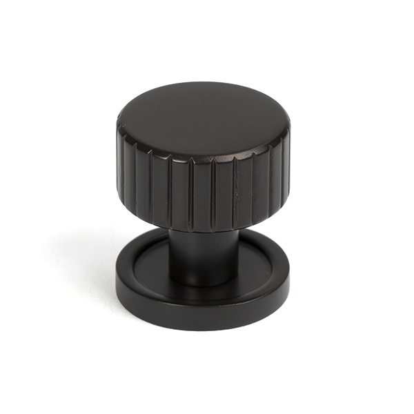 The FROM THE ANVIL® Aged Bronze Judd Cabinet Knob features a contemporary design with elegant parallel lines that showcase exceptional blacksmith craftsmanship. The 25mm knob comes with a plain rose base and is finished in a rich, matt aged bronze containing at least 85% copper. Protected by a durable matt lacquer to preserve its distinctive dark tones, this knob is ideal for modern kitchen drawers, cupboards, and doors. Supplied with a stainless steel M4 mounting screw.